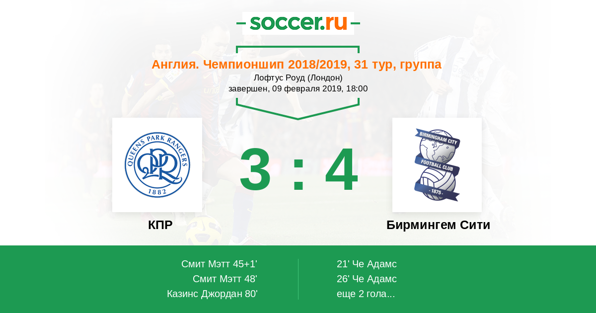 26’ 0:2 Че Адамс