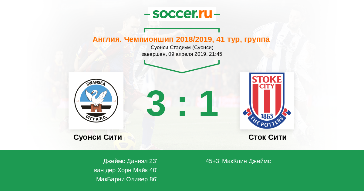 45+3' (2:1) МакКлин Джеймс (11) (Этебо Огенекаро (8))