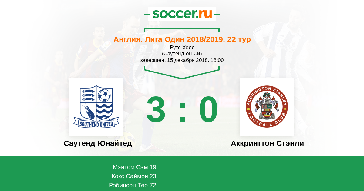19' (1:0) Мэнтом Сэм (18) (Робинсон Тео (31))