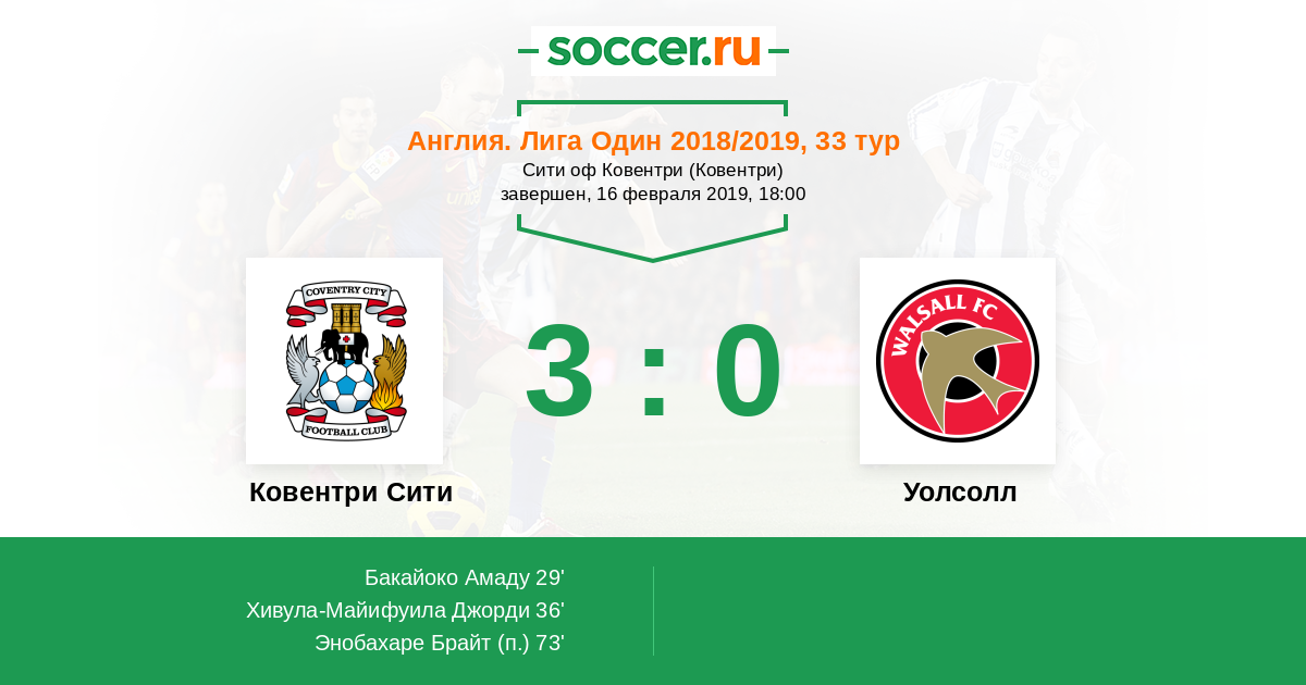 29' (1:0) Бакайоко Амаду (21) (Стерлинг Даджон (17))