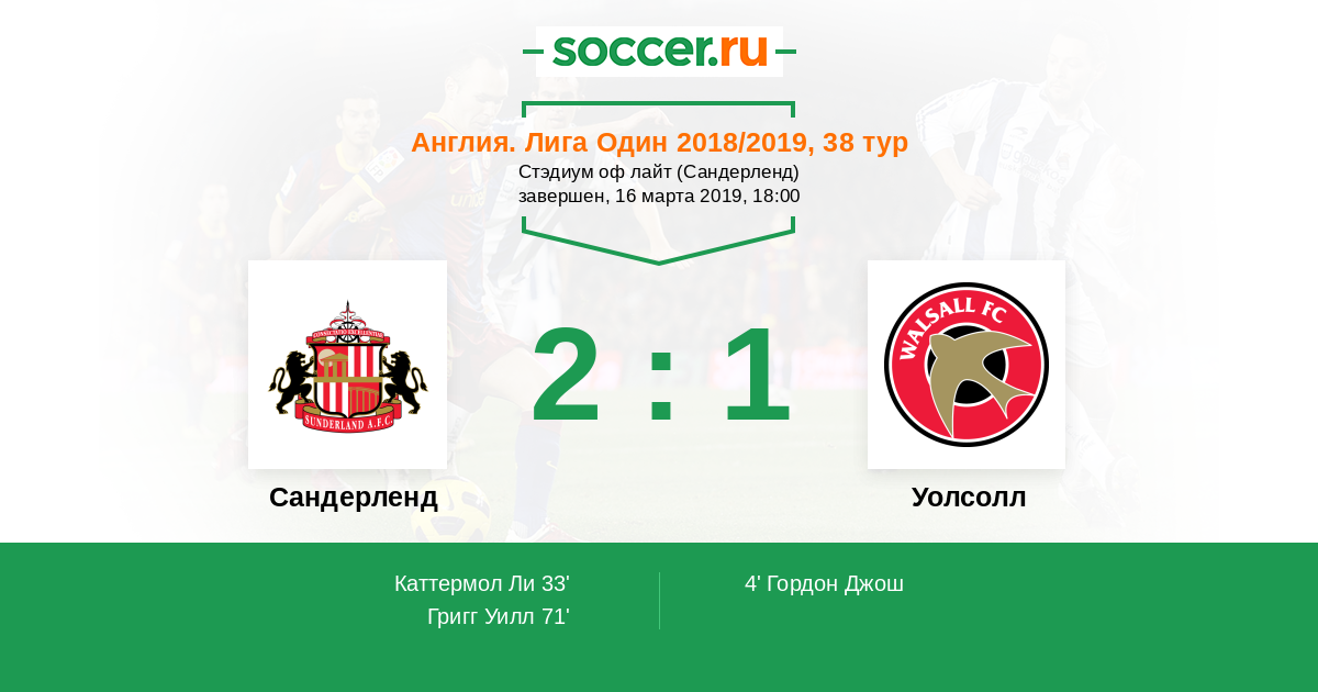 Гол71' (2:1) Григг Уилл (22) (Уайк Чарли (9))