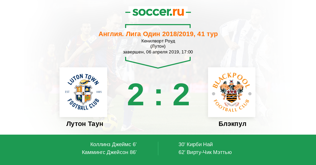 6' (1:0) Коллинз Джеймс (19) (Луалуа Казенга (25))