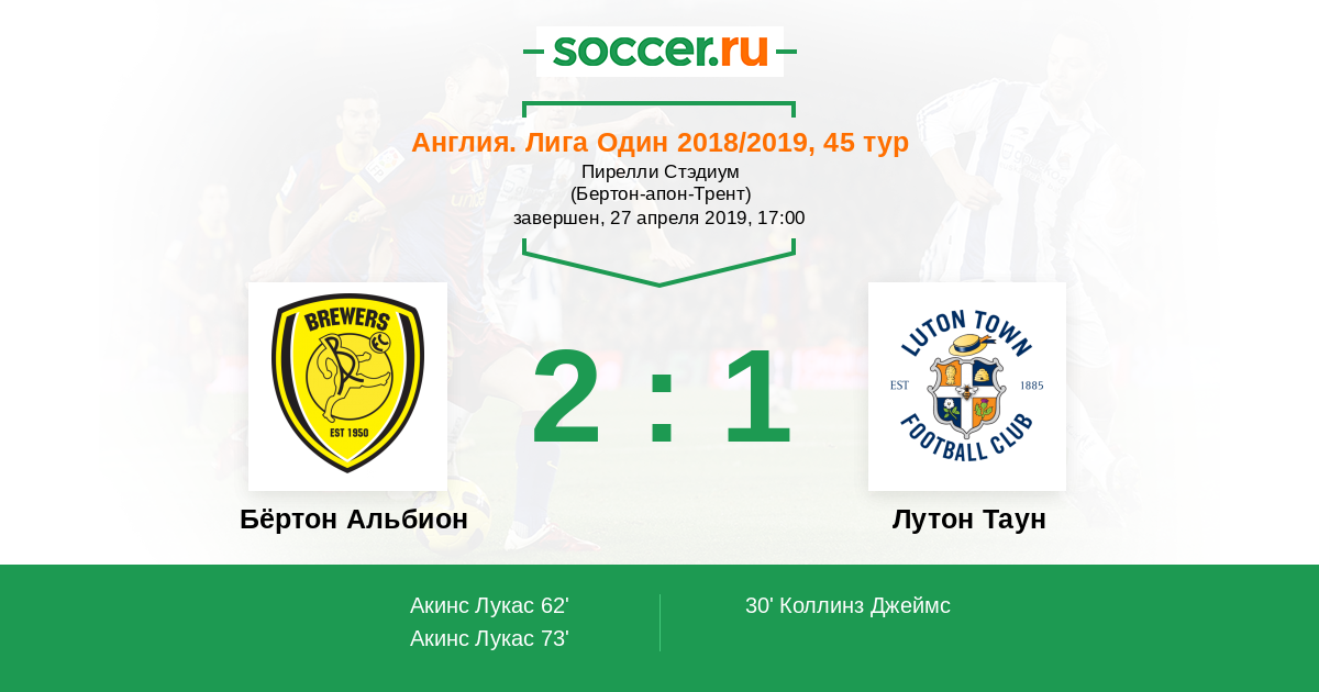 73' (2:1) Акинс Лукас (10) (Брайфорд Джон (2))