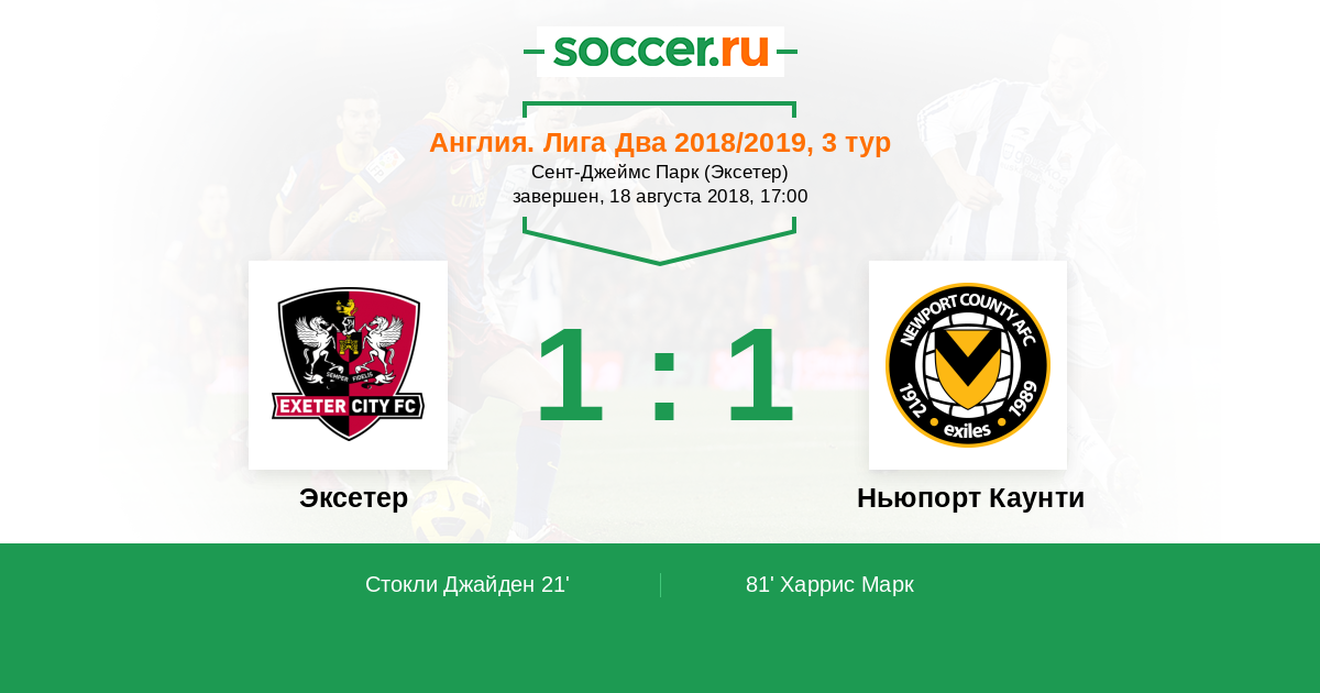21' (1:0) Стокли Джайден (11) (Тэйлор Джейк (25))
