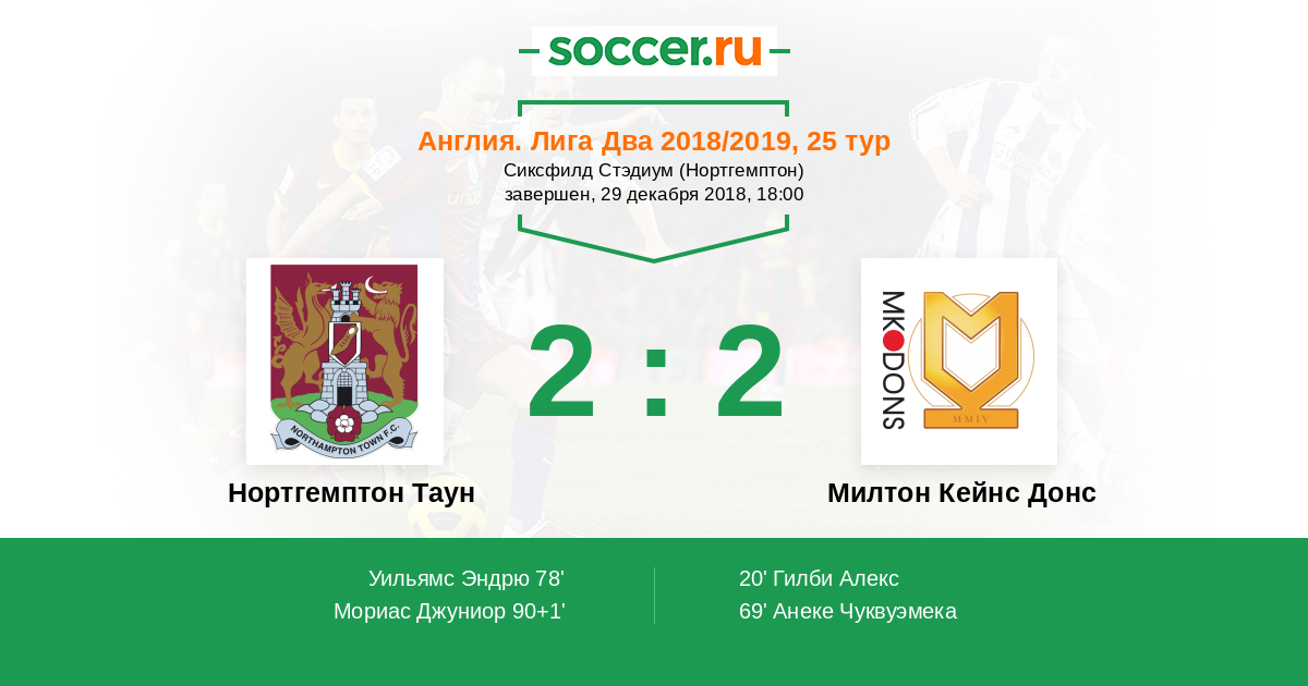 90+1' (2:2) Мориас Джуниор (14) (Корнелл Дэвид (1))