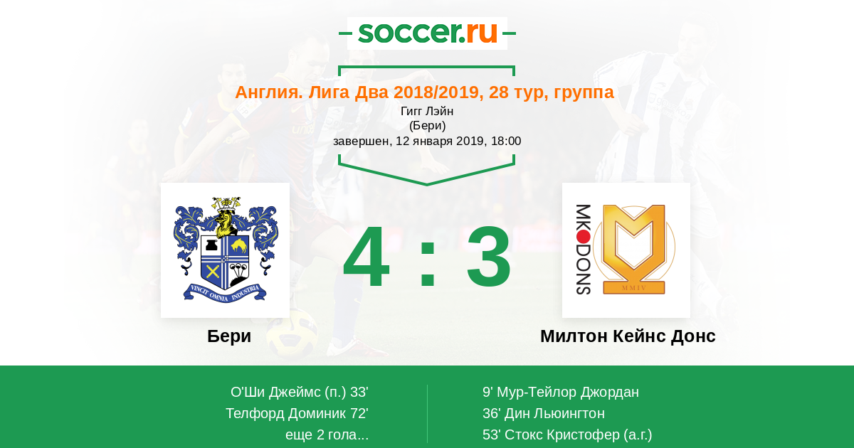 36' (1:2) Дин Льюингтон (3) (Хаутон Джордан (24))