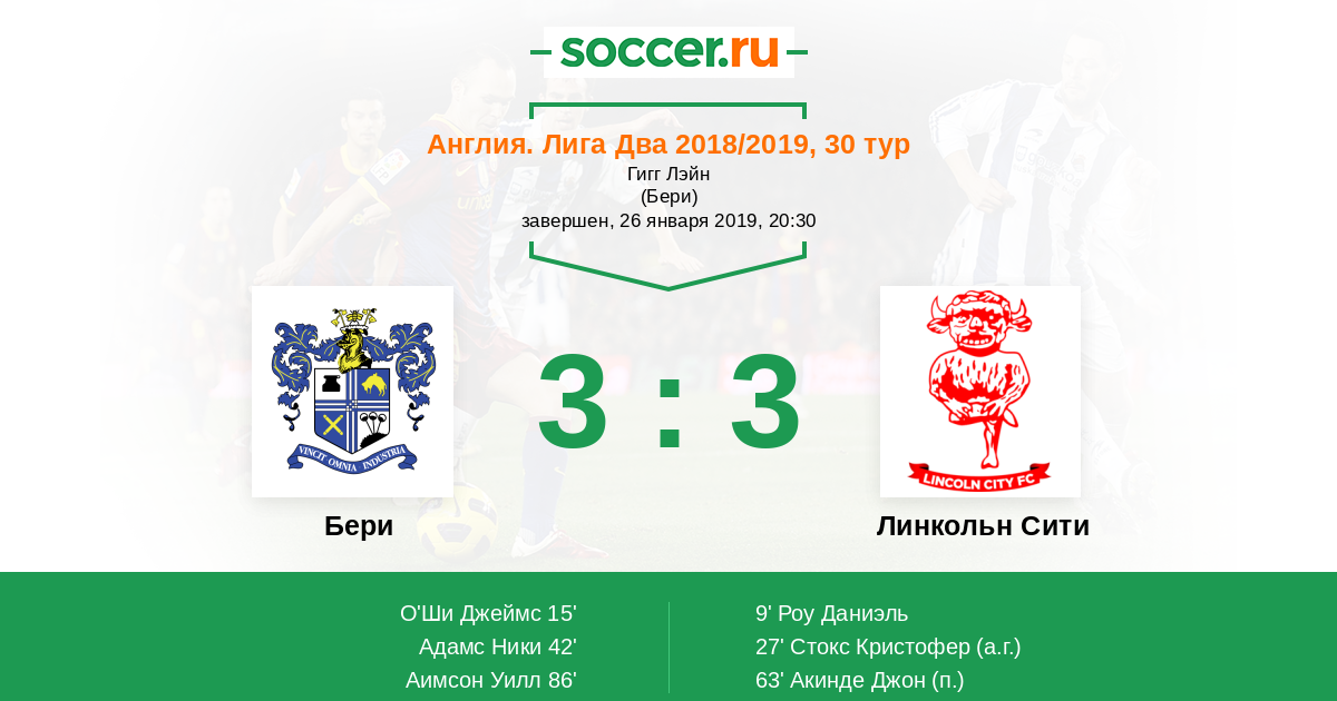 86' (3:3) Аимсон Уилл (4) (Адамс Ники (7))