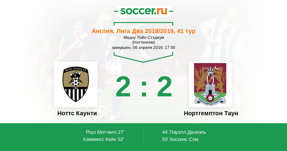 52' (2:2) Хэммингс Кейн (15) (Джон Стид (30))