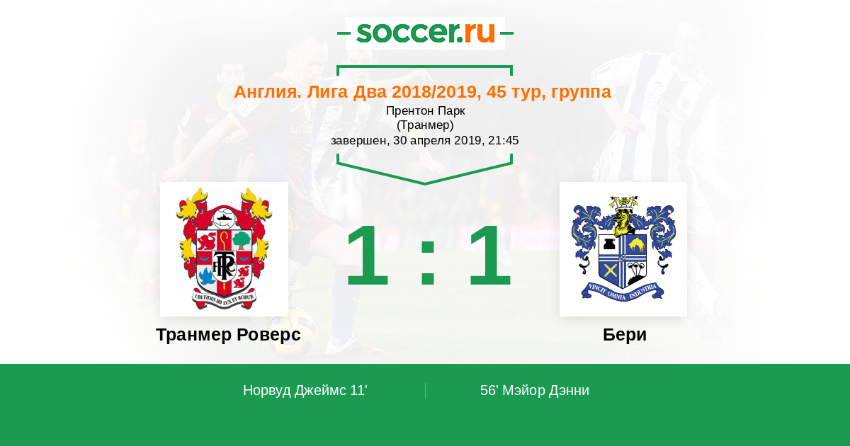 11' (1:0) Норвуд Джеймс (10) (Моррис Кирон (19))