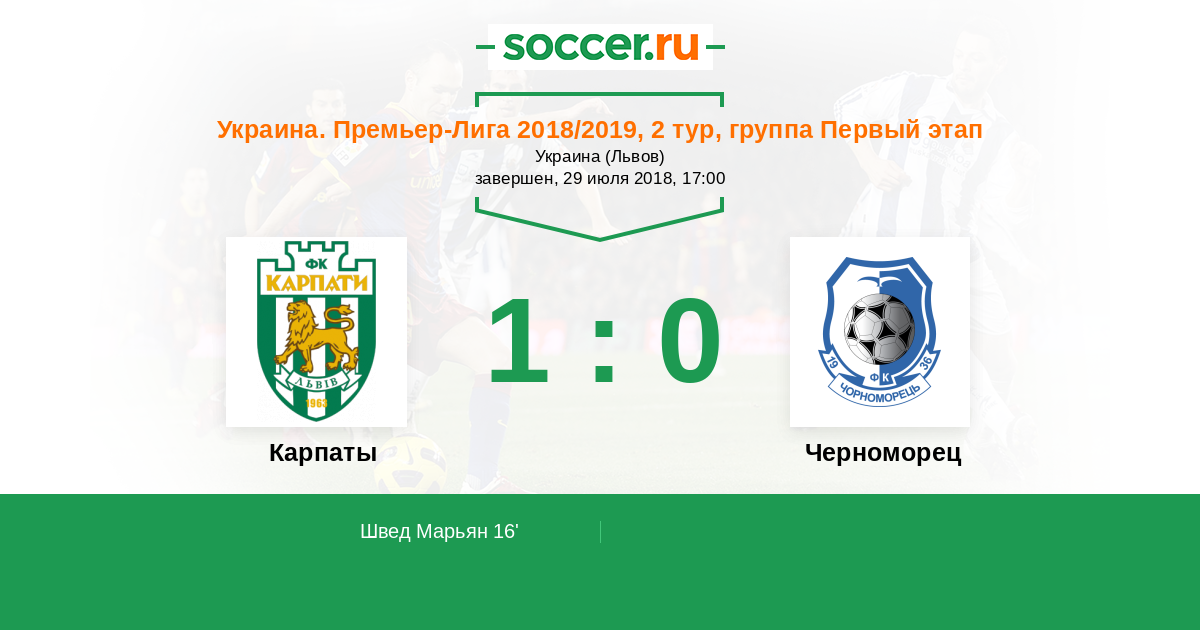 16' (1:0) Швед Марьян (35) (Мякушко Сергей (33))