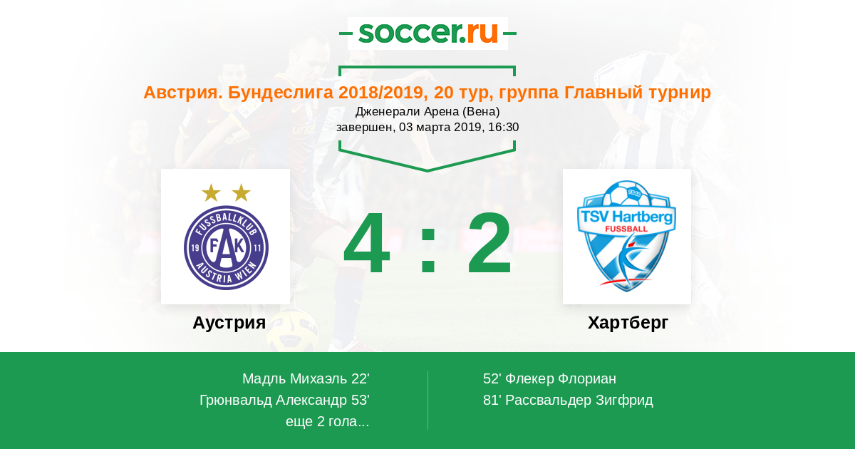 81' (3:2) Рассвальдер Зигфрид (7) (Кайнц Тобиас (23))