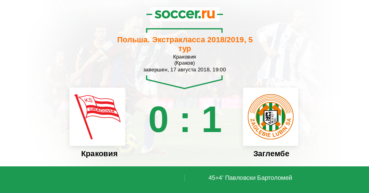 45+4' (0:1) Павловски Бартоломей (11) (Ягелло Филип (19))