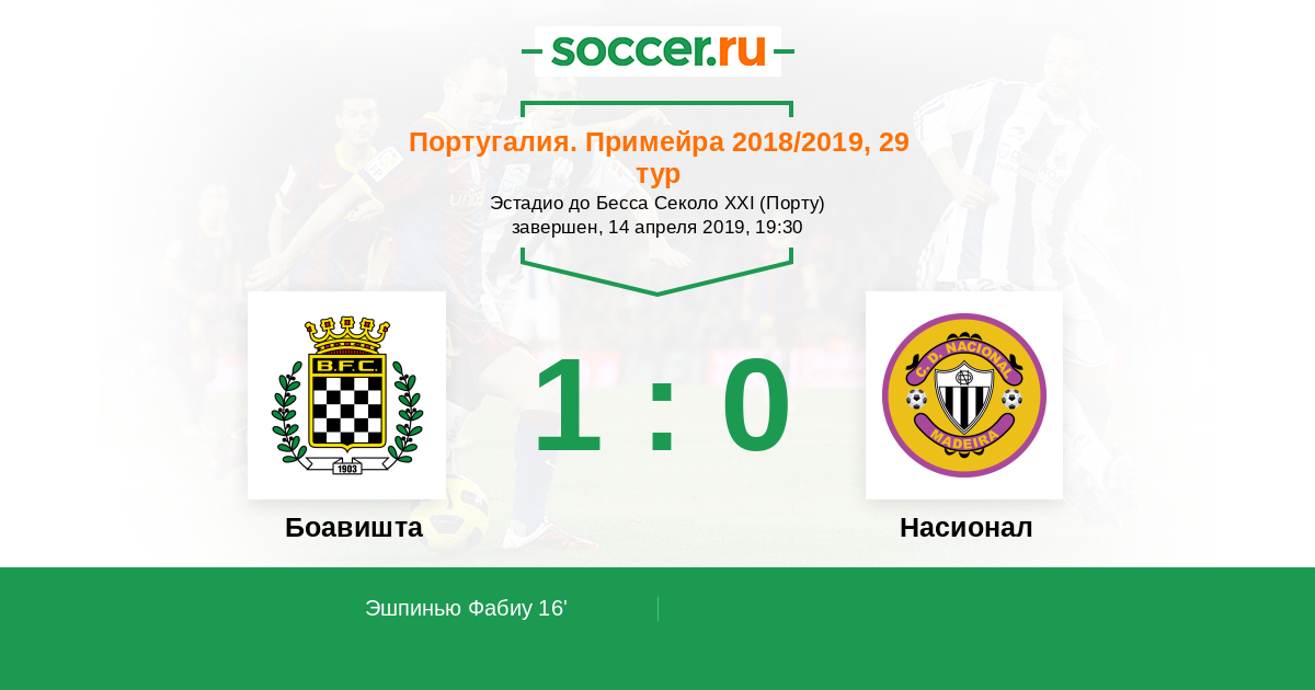 16' (1:0) Эшпинью Фабиу (10) (Фонсека Жоау (5))