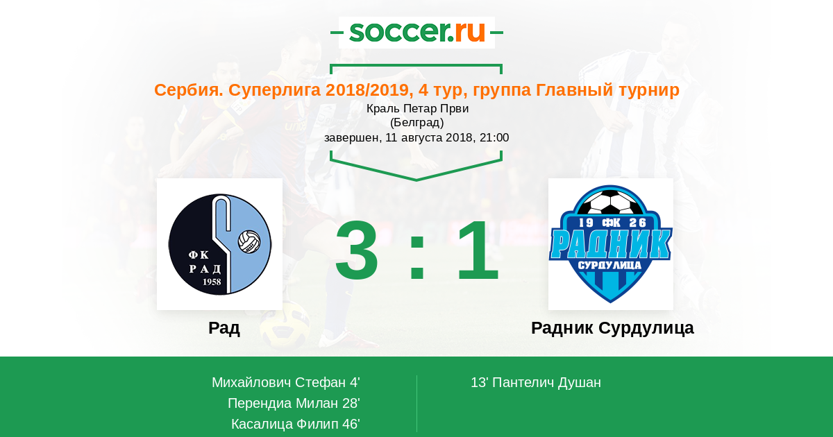 4' (1:0) Михайлович Стефан (47)