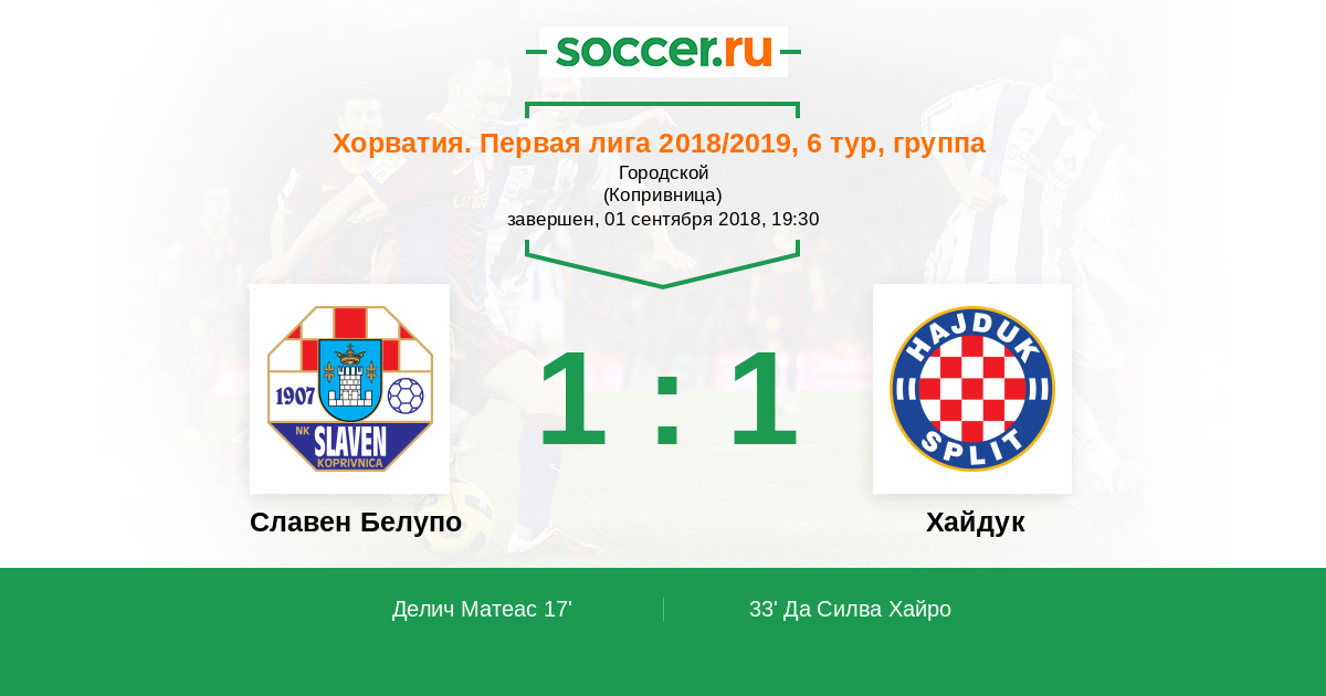 17' (1:0) Делич Матеас (14)