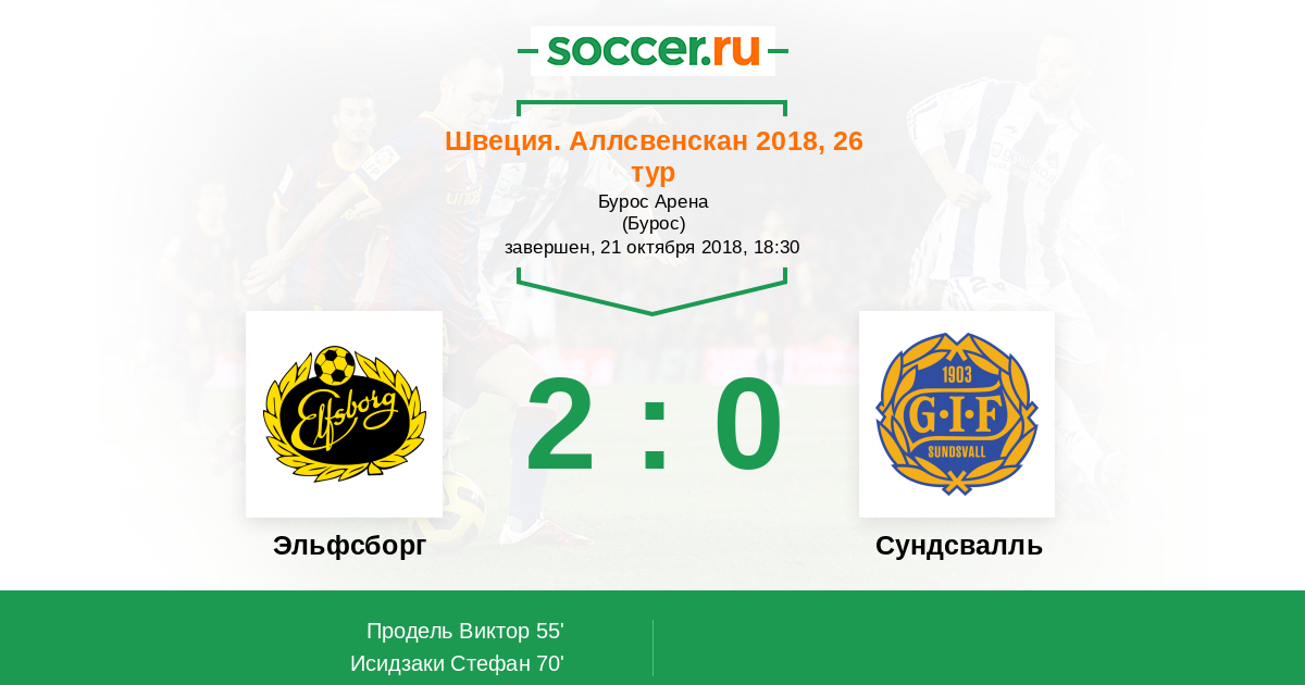 70' (2:0) Исидзаки Стефан (24) (Густавссон Даниэль (7))