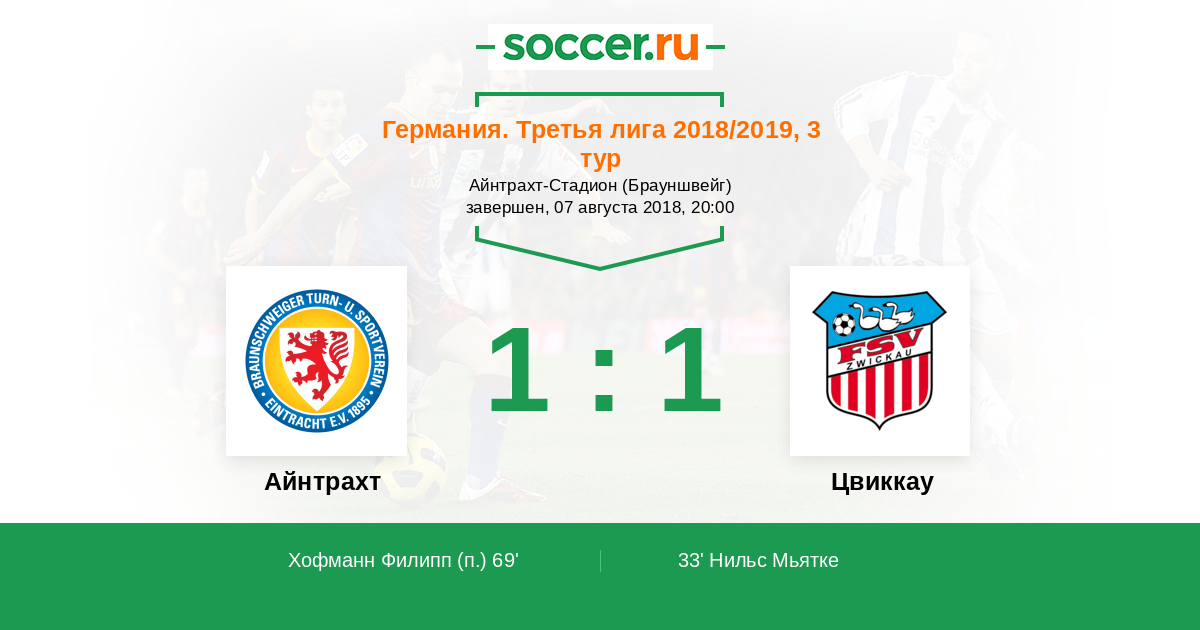 33' (0:1) Нильс Мьятке (28) (Бикель Кристиан (10))