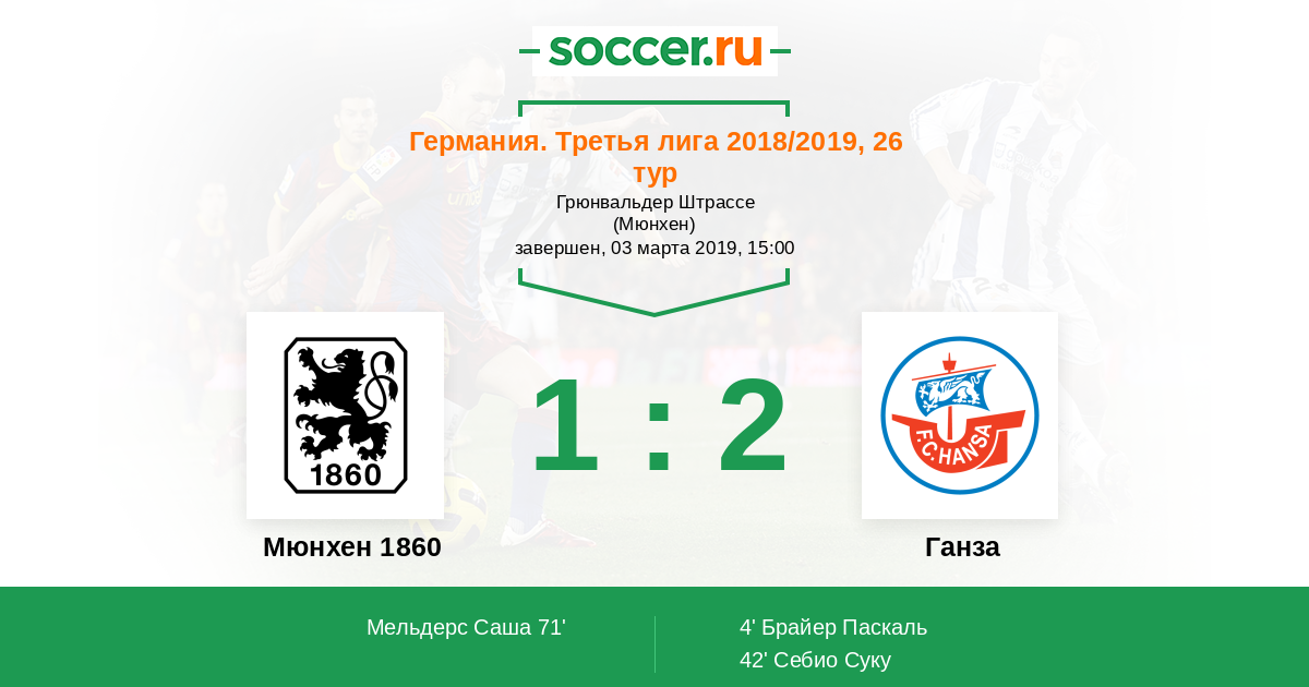 4' (0:1) Брайер Паскаль (39) (Себио Суку (7))