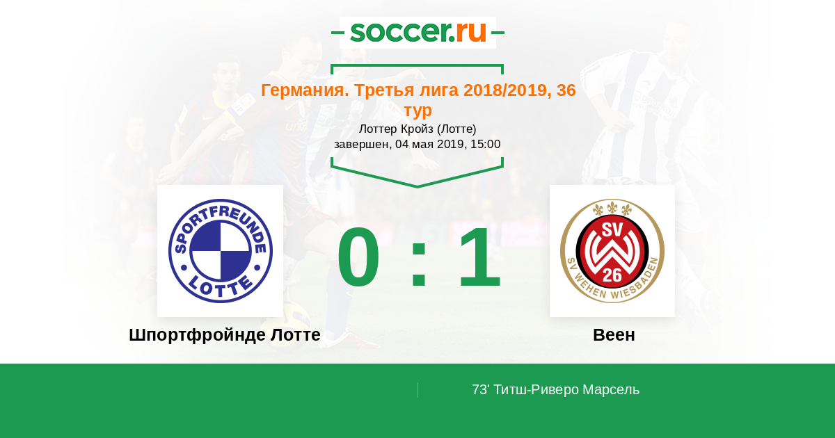 73' (0:1) Титш-Риверо Марсель (26) (Шипноски Никлас (11))