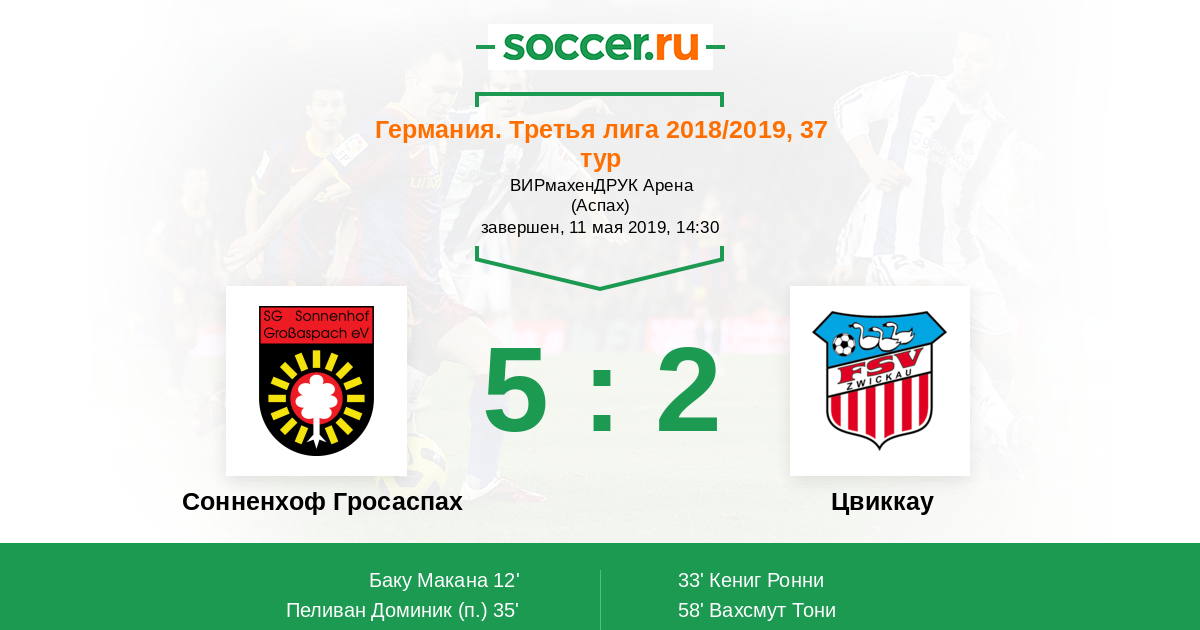 12' (1:0) Баку Макана (11) (Реттгер Тимо (18))