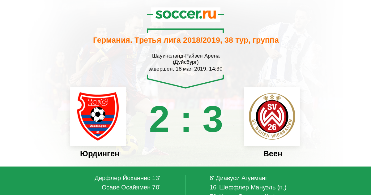 13' (1:1) Дерфлер Йоханнес (16) (Осаве Осайямен (35))