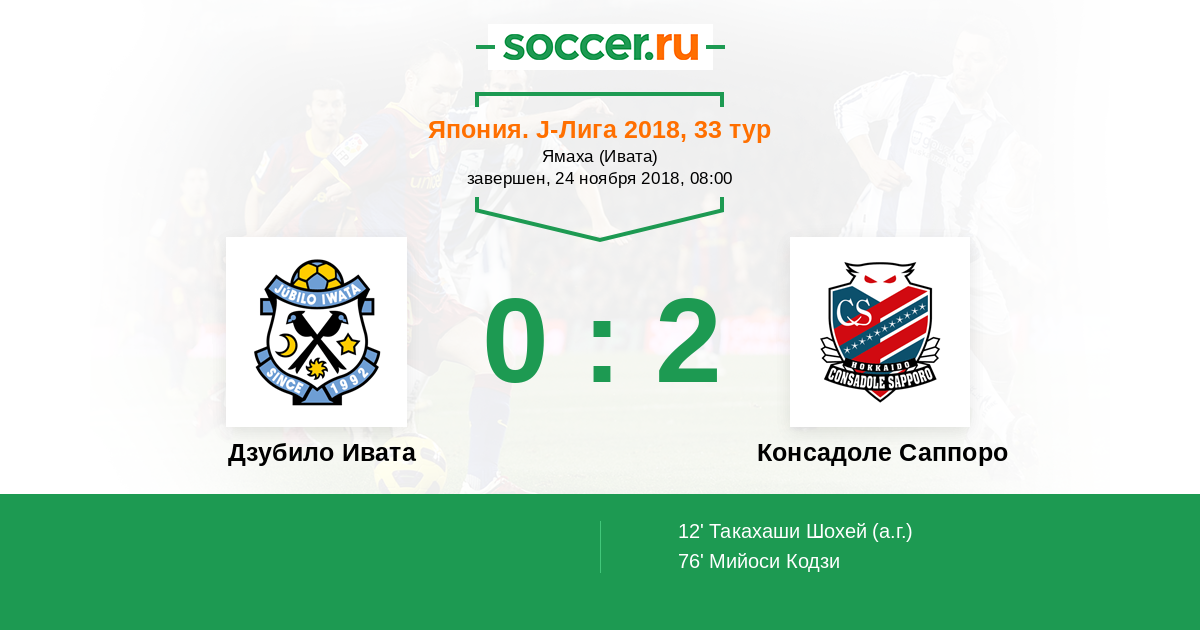 76' (0:2) Мийоси Кодзи (41) (Токура Кен (9))