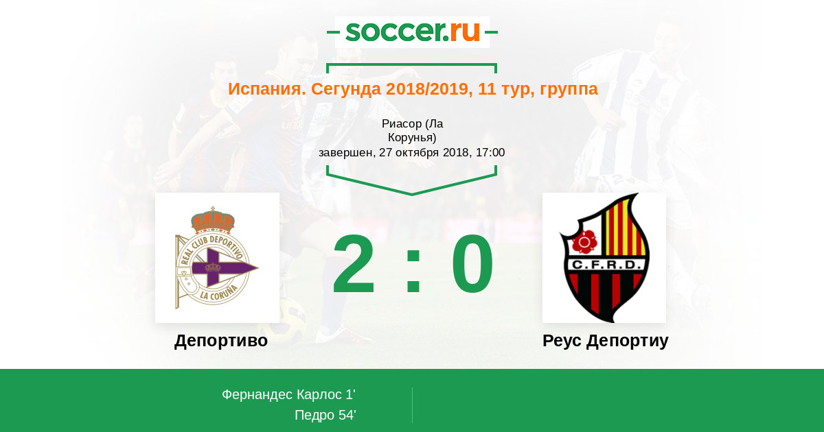 54' (2:0) Педро (15) (Гомес Висенте (8))