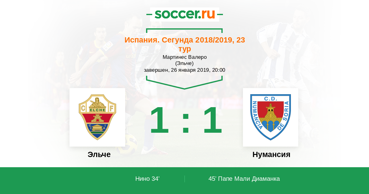 45' (1:1) Папе Мали Диаманка (24) (Альберто Эскасси (6))