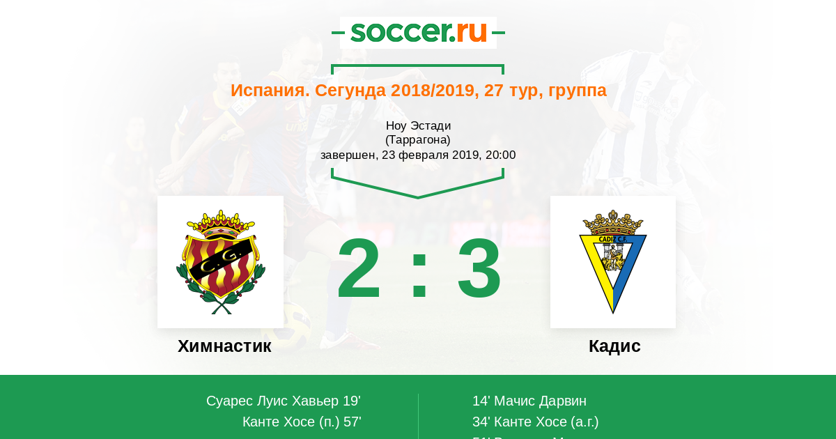 19' (1:1) Суарес Луис Хавьер (26) (Канте Хосе (11))