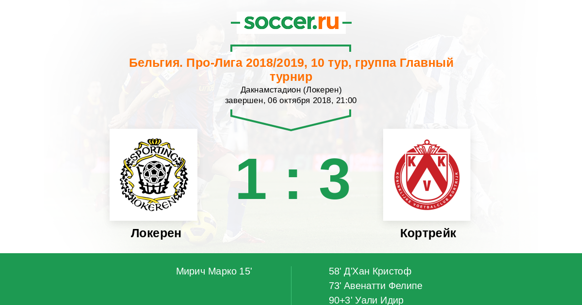 15' (1:0) Мирич Марко (21) (Де Риддер Стив (22))