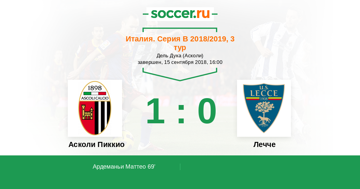 69' (1:0) Ардеманьи Маттео (32) (Лавероне Лоренцо (37))