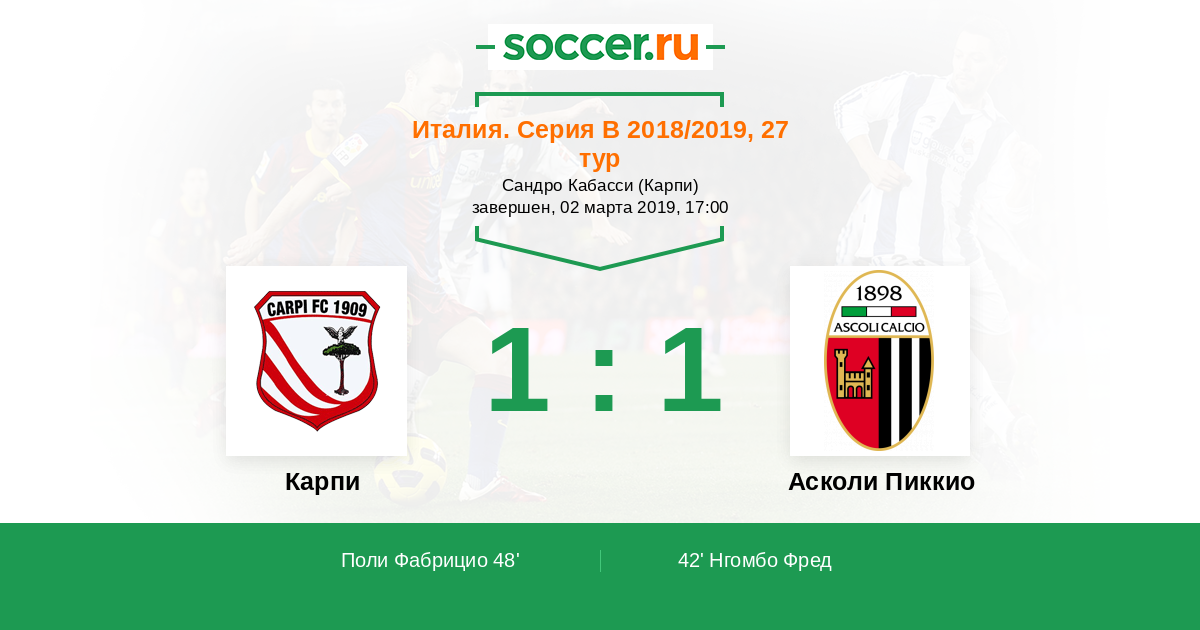 42' (0:1) Нгомбо Фред (39) (Беретта Джакомо (21))