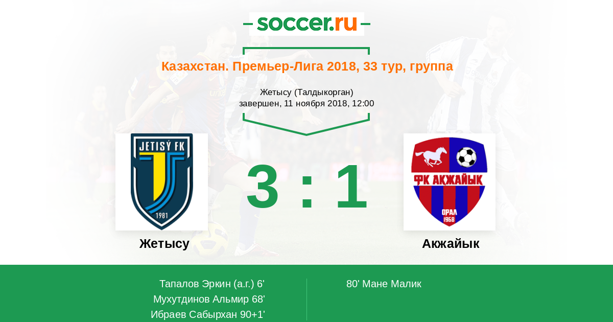 90+1' (3:1) Ибраев Сабырхан