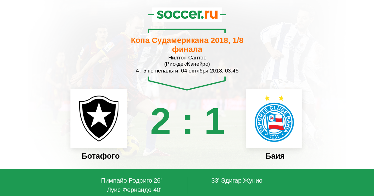 33' (1:1) Эдигар Жунио (11) (Жилберто (22))