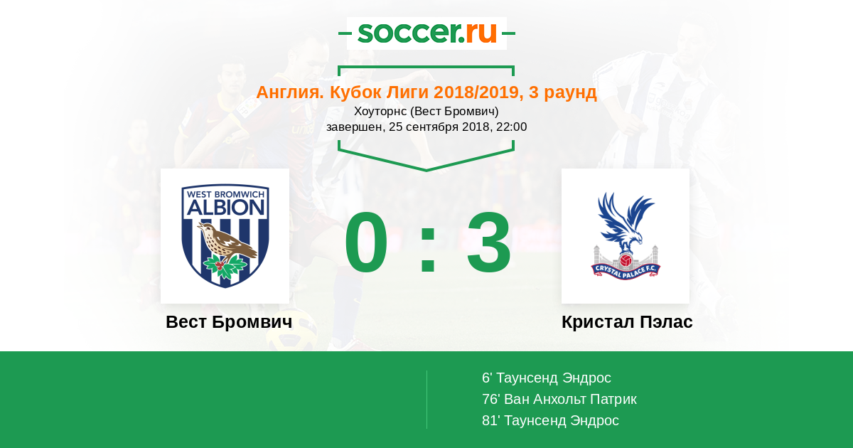 81' (0:3) Таунсенд Эндрос (10) (Ван-Биссака Аарон (29))