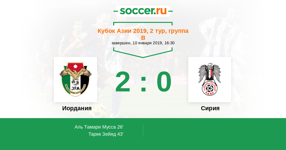 26' (1:0) Аль Тамари Мусса (18) (Юсеф Аль Равашде (7))