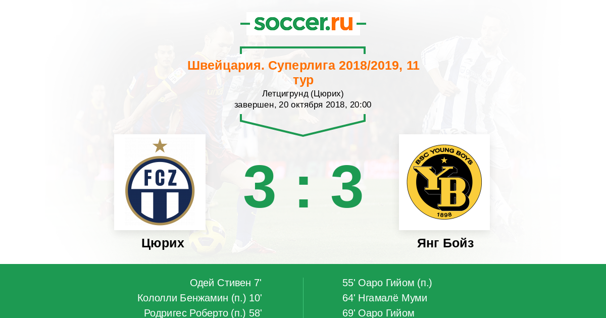 69' (3:3) Оаро Гийом (99) (Ассале Роджер (17))