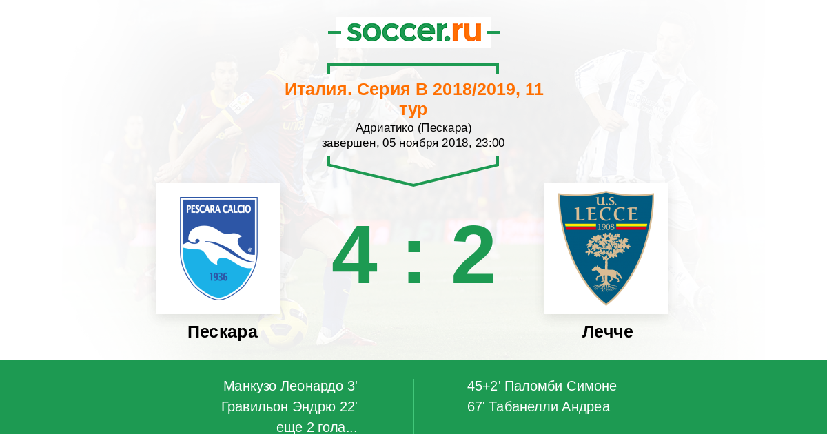 Гол90+6' (4:2) Дель Соле Фердинандо (29) (Манкузо Леонардо (7))