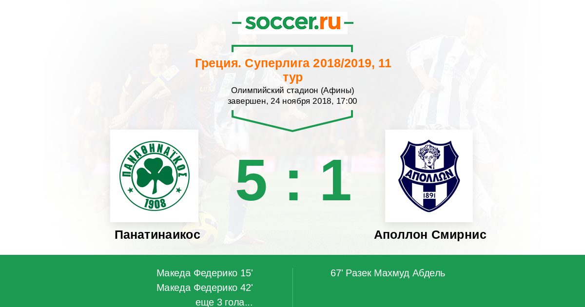 15' (1:0) Македа Федерико (9) (Хацийоаннис Анастасиос (11))