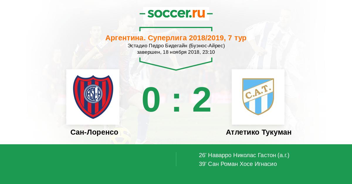 39' (0:2) Сан Роман Хосе Игнасио (20) (Барбона Давид (19))