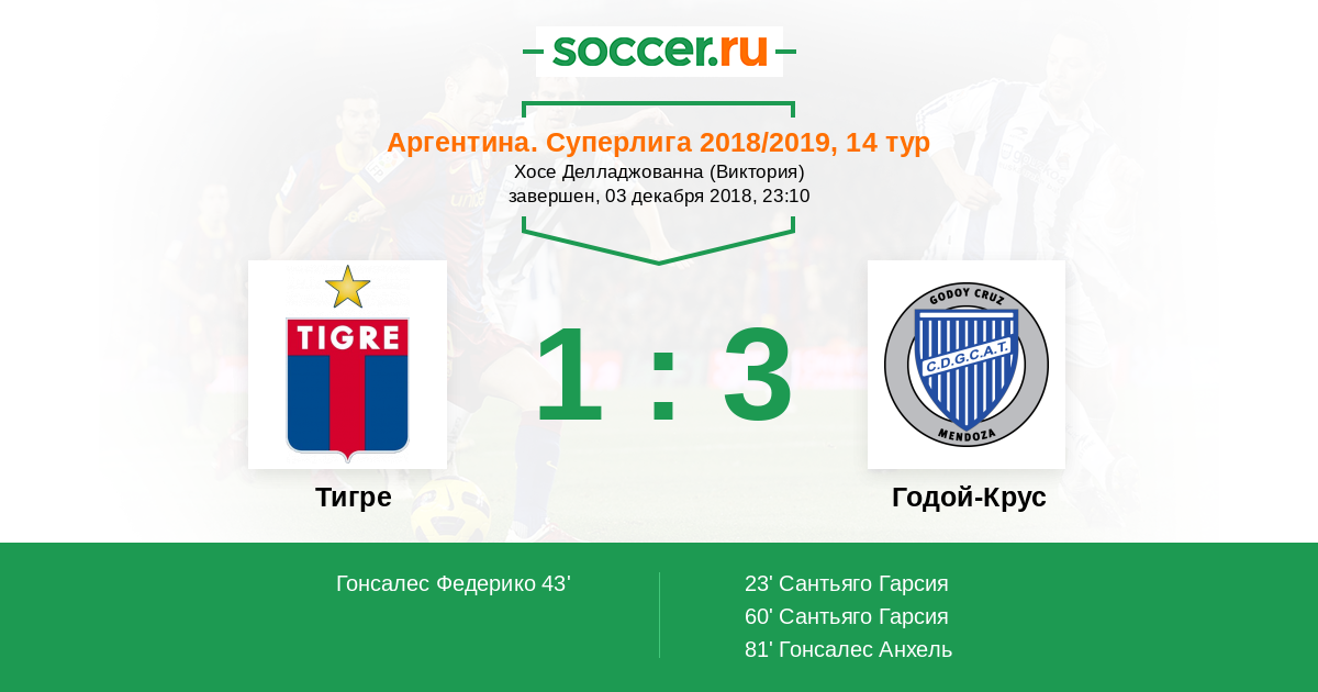 60' (1:2) Сантьяго Гарсия (18) (Соса Диего (20))