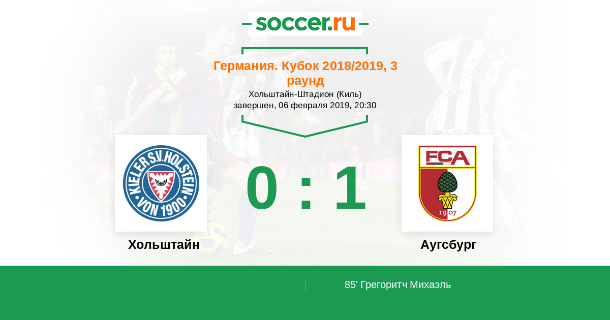 85' (0:1) Грегоритч Михаэль (11) (Йенсен Фредрик (24))