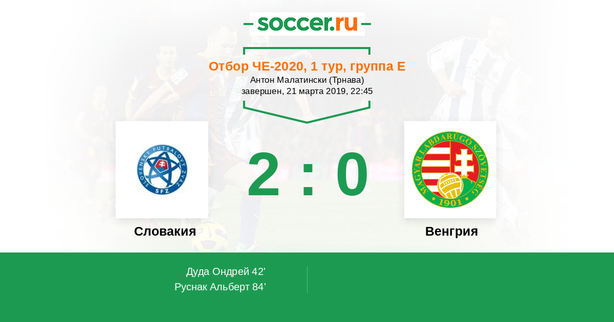 42' (1:0) Дуда Ондрей (8) (Руснак Альберт (10))