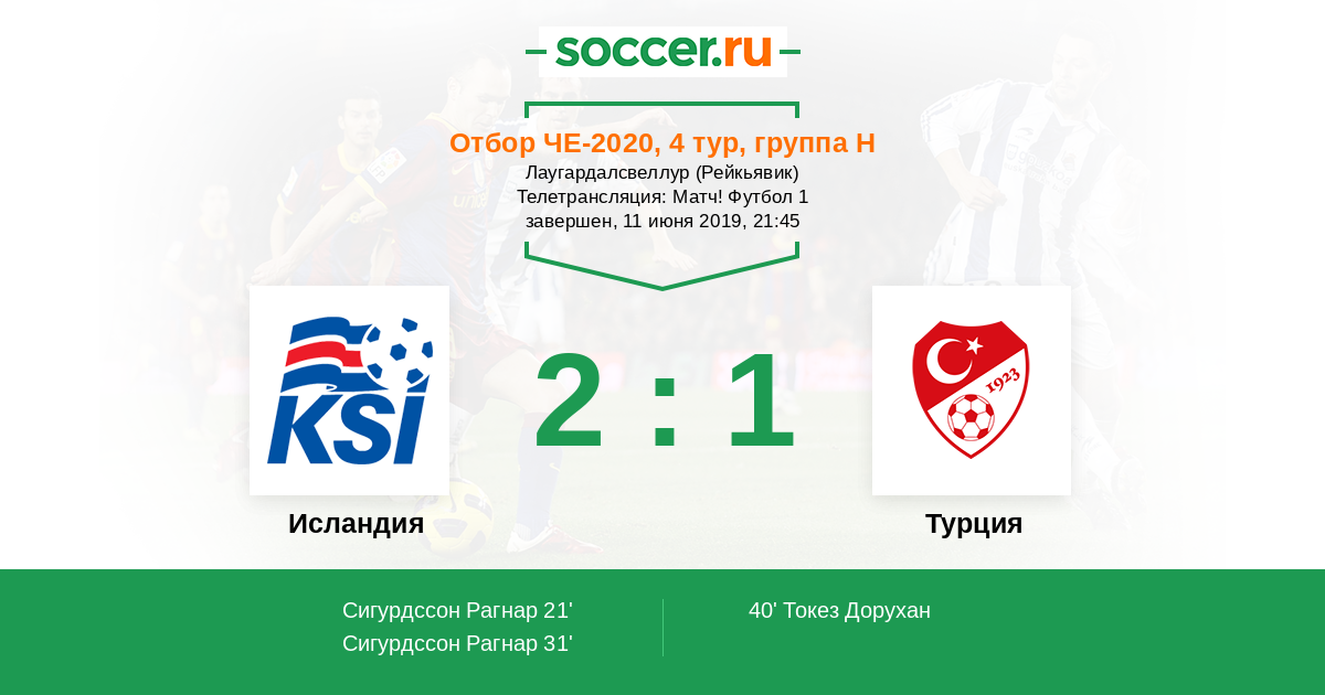 21' (1:0) Сигурдссон Рагнар (6) (Гудмундссон Йохан (7))