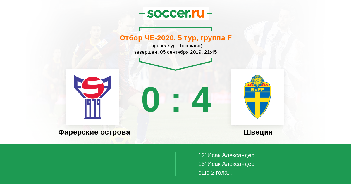 15' (0:2) Исак Александер (15) (Ларссон Себастьян (7))