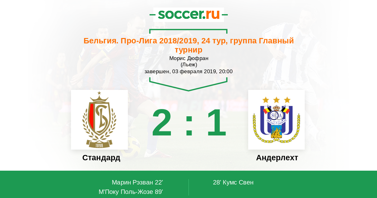 89' (2:1) М'Поку Поль-Жозе (40) (Ванхёсден Зиньо (3))