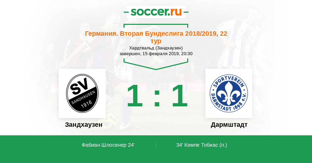 24' (1:0) Фабиан Шлосенер (11) (Гисласон Рюрик (9))