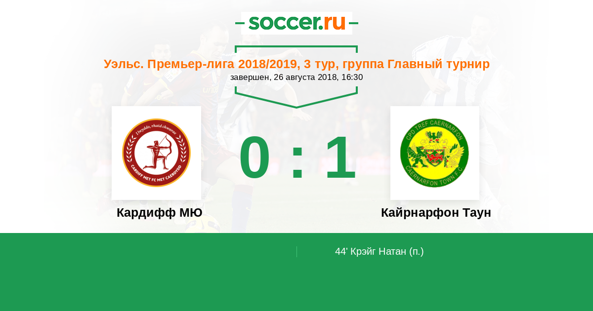 44’ 0:1(П) Крэйг Натан