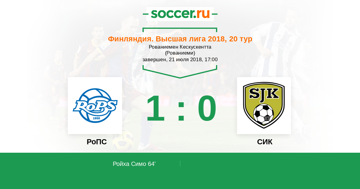 64' (1:0) Ройха Симо (20)