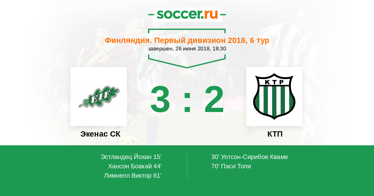 15' (1:0) Эстландец Йохан (9)